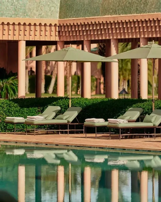 Stunning Design – The resort’s blush-pink walls and Moorish arches mirror the desert’s palette, creating a breathtaking atmosphere.